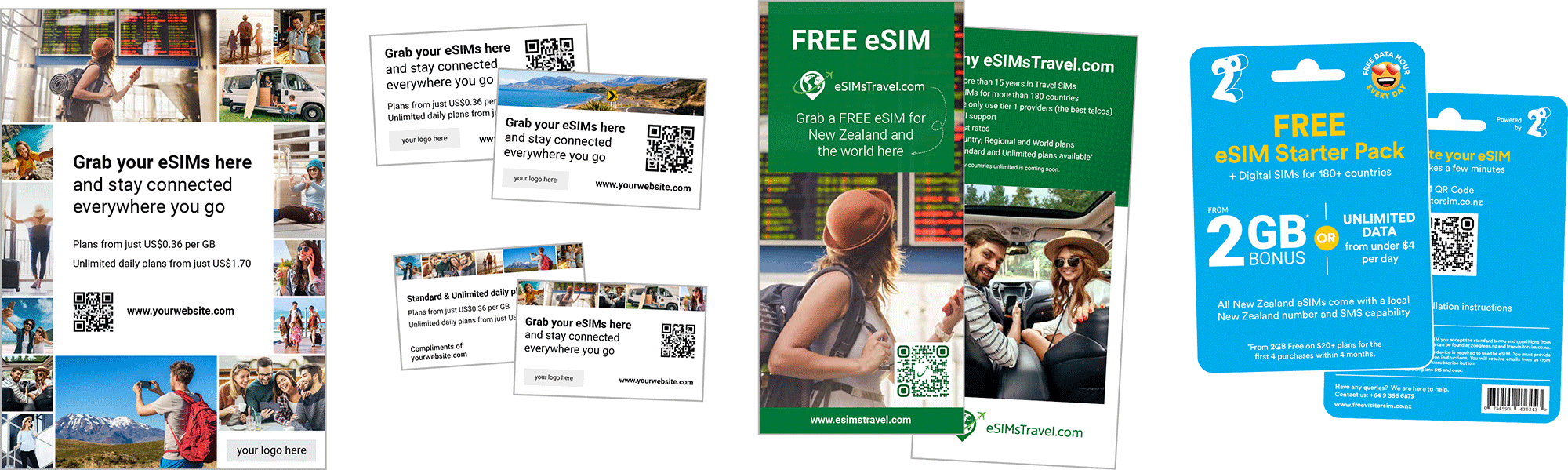 - We provide you with your own white label branded website, at no cost to you. Along with free eSIM Starter Packs leading to your website.
